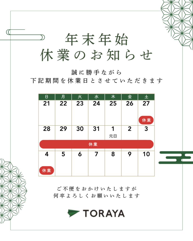 冬季期間中に頂きましたお問い合わせにつきましては、2026年1月5日(月)以降、順次対応させていただきます。